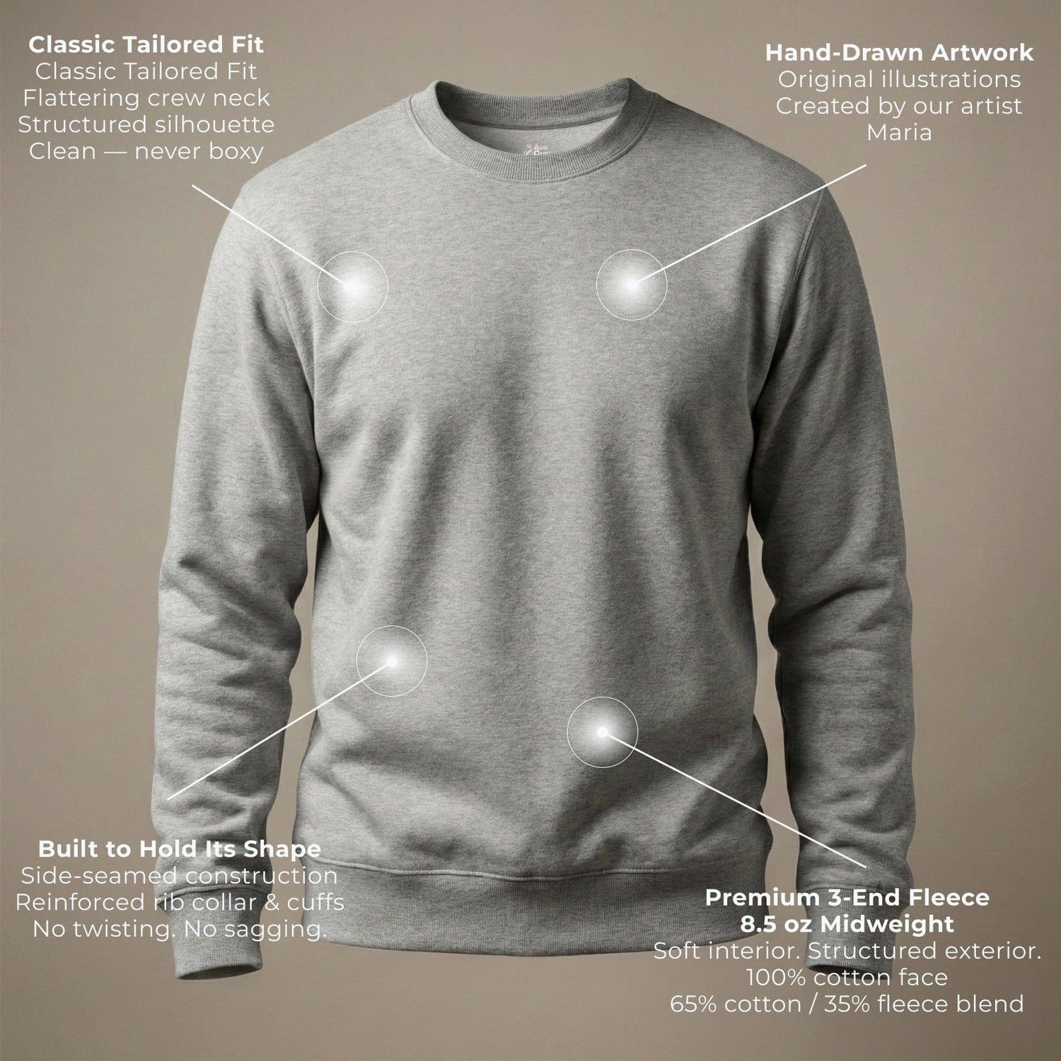 Made from premium 3-end fleece for structure, softness, and long-term wear.